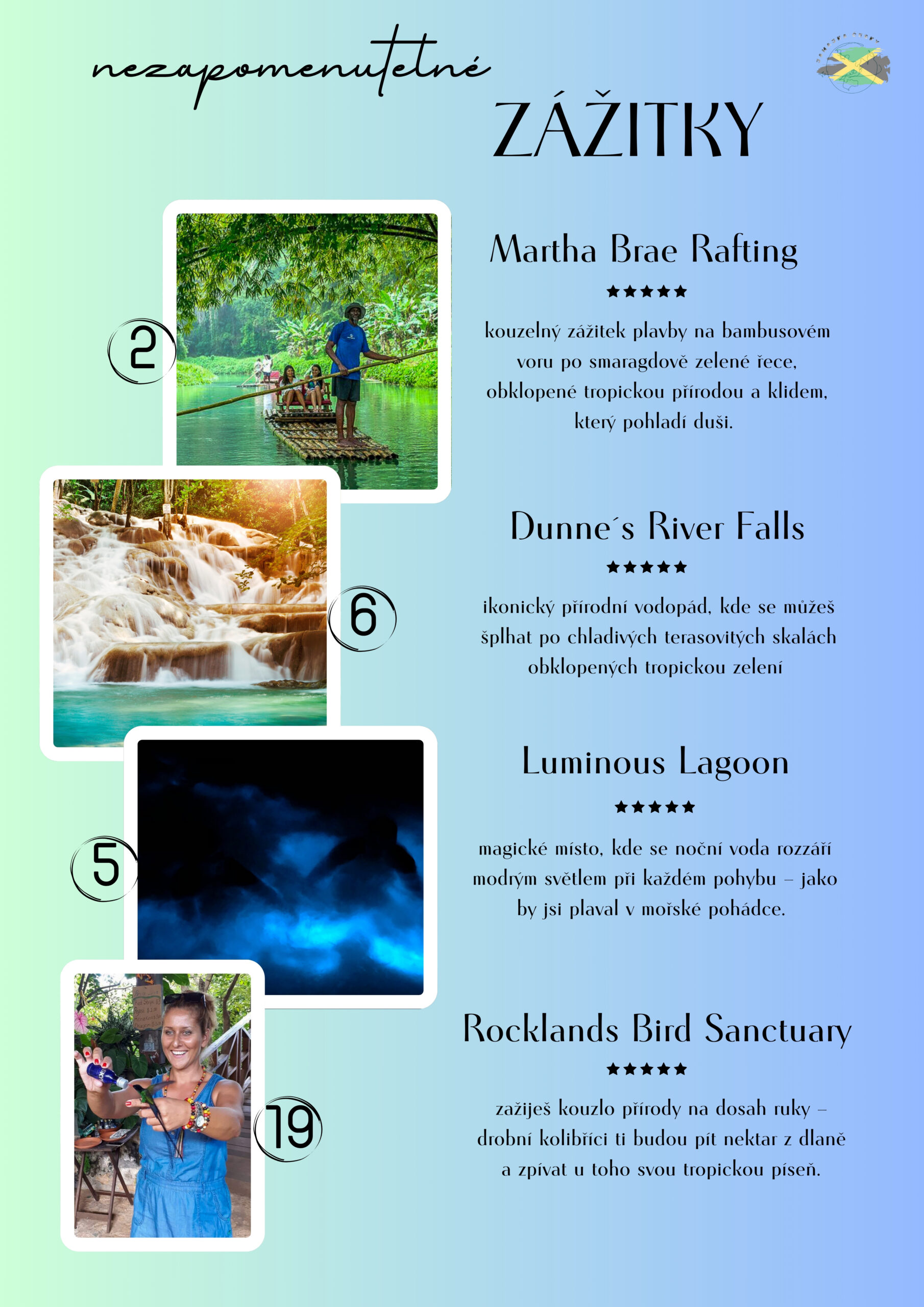 Objevíš to nejlepší z tohoto tropického ostrova. Od dech beroucích vodopádů a zelených pralesů, přes úchvatné pláže a křišťálově čisté moře, až po pulzující reggae atmosféru a autentická místa, kam běžní turisté často nezavítají.